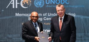 At the signing ceremony attended by Yuri Fedotov, the UNODC Executive Director, Dato’ Windsor John, the AFC General Secretary, said, “This MoU is another important piece in the continuing battle to preserve the good name and integrity of our sport.”