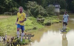 Football fans in Kerala have installed huge cut-outs of Lionel Messi and Neymar Jr in the Kurungattu Kadavu river in Pullavoor of Kozhikode district.