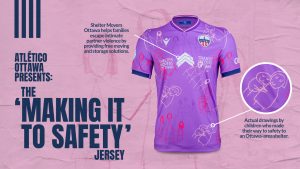The kit features actual drawings by children who made their way to safety as a result of the effort of the Shelter Movers team. It is part of a continued effort from Atlético Ottawa to raise funds and awareness for the organization, so that they can complete their next 1,000 moves, and beyond.