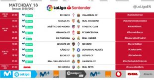 Read More »Kick-off times released for Matchday 18 of 2020/21 LaLiga!