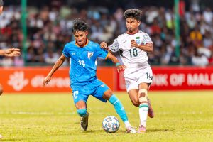 The second half followed a similar pattern, with neither side willing to concede space. Both teams looked cautious, and the match continued to be played largely in midfield. India’s first meaningful opportunity after the break arrived when Yaipharemba delivered a ball from deep near the edge of the box. Vishal came under pressure but failed to direct his attempt on target.
