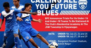I-League champions Bengaluru FC recently announced that the club would set-up its own Residential Football Academy at the JSW Township in Vijayanagar, Bellary in Karnataka. To select players for the Residential Football Academy, the club will conduct trials in five different locations across the country – Bengaluru, Kerala, Mizoram, Punjab …