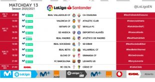 Read More »Kick-off times released for Matchday 13 of 2020/21 LaLiga!