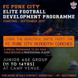 The FC Pune City Elite Football Development Programme will be run by FCPC Academy coaches for children between the ages of 11 to 14 in the junior age group.