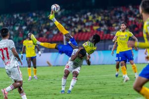 Kerala Blasters continued to carry threat after the interval. Kevin Yoke came closest to extending the lead, driving into the box and forcing a sharp save onto the post, underlining the side’s ability to create moments through direct attacking play.