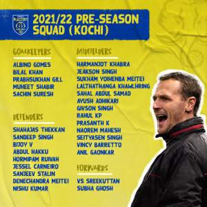 New head coach Ivan Vukomanovic, the coaching staff, and players will arrive in Kochi to commence the first-leg of their pre-season before flying abroad to complete the rest of their pre-season training. The month-long training camp will allow the players to complete their vaccinations and medical checks before turning the focus on physical conditioning.