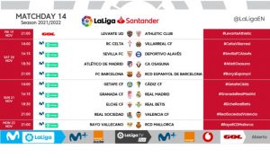 Kick-off times confirmed for Matchday 14 of 2021/22 LaLiga!