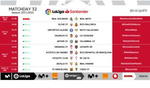 The Spanish LaLiga returns and have confirmed kick-off times for Matchday 32 of LaLiga Santander 2021/22.