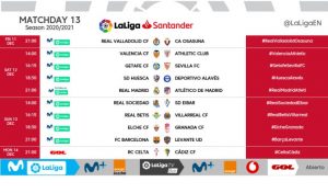 The Spanish LaLiga returns and have confirmed kick-off times for Matchday 13 of LaLiga Santander 2020/21.