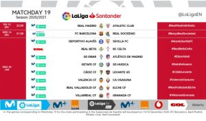 The Spanish LaLiga returns and have confirmed kick-off times for Matchday 19 of LaLiga Santander 2020/21.