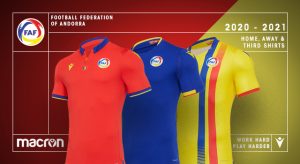 Macron and the Andorran Football Federation have presented the new shirts of the Andorra national team. The kit was created within the larger agreement between Macron and UEFA, the Kit Assistance Scheme, with which UEFA supports minor football federations by providing supplies and teamwear.