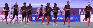 A minute later, Emmanuel rounded keeper Thapa but missed the target from inside the box wide on the left. He failed to connect again a minute later after an Arjun Jayaraj cross found him. Thapa was equal to it again.