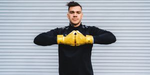 Jordan Pickford’s Golden Glove edition of the ULTRA Grip 1 Hybrid Pro features 4mm Ultimate Grip Latex with an additional layer of cushioning on the palm for superior grip and provides optimal surface area for catching in all weather conditions. The gloves integrate a Latex Backhand for optimal stability and support when punching the ball and utilize a Latex Wrist Strap for wrist lockdown with a lightweight textile material for lightweight comfort.
