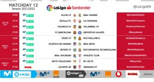 The Spanish LaLiga returns and have confirmed kick-off times for Matchday 12 of LaLiga Santander 2021/22. The action gets underway on Saturday, October 30 with Elche CF v Real Madrid at 2pm CEST, and comes to a close with Levante UD v Granada CF at 9pm CET on Monday, November …