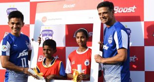 Two winners of a city-wide talent identification program were handed year-long scholarships to the BFC Soccer Schools by former India cricket captain and Bengaluru FC ambassador Rahul Dravid and BFC skipper Sunil Chhetri at the Boost Play The Pros event at the Bangalore Football Stadium on Saturday. Ten-year-old Guru Kiran …
