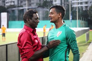 Captain Sandesh Jhingan takes a few more steps and runs straight to Vijayan. “I missed you Sir. How are you,” the skipper asks. “Carry on the good work,” Vijayan answers back. Understandably the chat couldn’t continue for long as Jhingan had to rush back for practice.