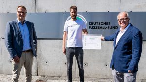 UEFA has awarded the “In safe hands” association with the “Foundation for Children Award”. DFB President Fritz Keller presented the certificate, endowed with 50,000 euros, to Jonas Ermes at the DFB headquarters in Frankfurt. The former goalkeeper of VfL Bochum founded the club, which has been supported by the DFL Foundation since 2016, five years ago together with Andreas Luthe, today’s goalkeeper of FC Augsburg.