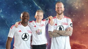 Union’s mascots will also wear an exclusive jersey as they enter the pitch with the players. Union’s top sponsor, the Mittelbrandenburgische Sparkasse, will forego their own presence on the kids’ shirts to make space for the super pups Chase, Rubble, Skye, Marshall and Liberty from PAW Patrol: The Mighty Movie.