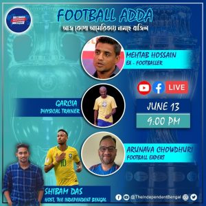 On the opening Lockdown Copa America ADDA of The Independent Bengal, host Shibam Das welcomed former player Mehtab Hussain, Brazilian physio Djair Miranda Garcia and myself Arunava Chaudhuri.